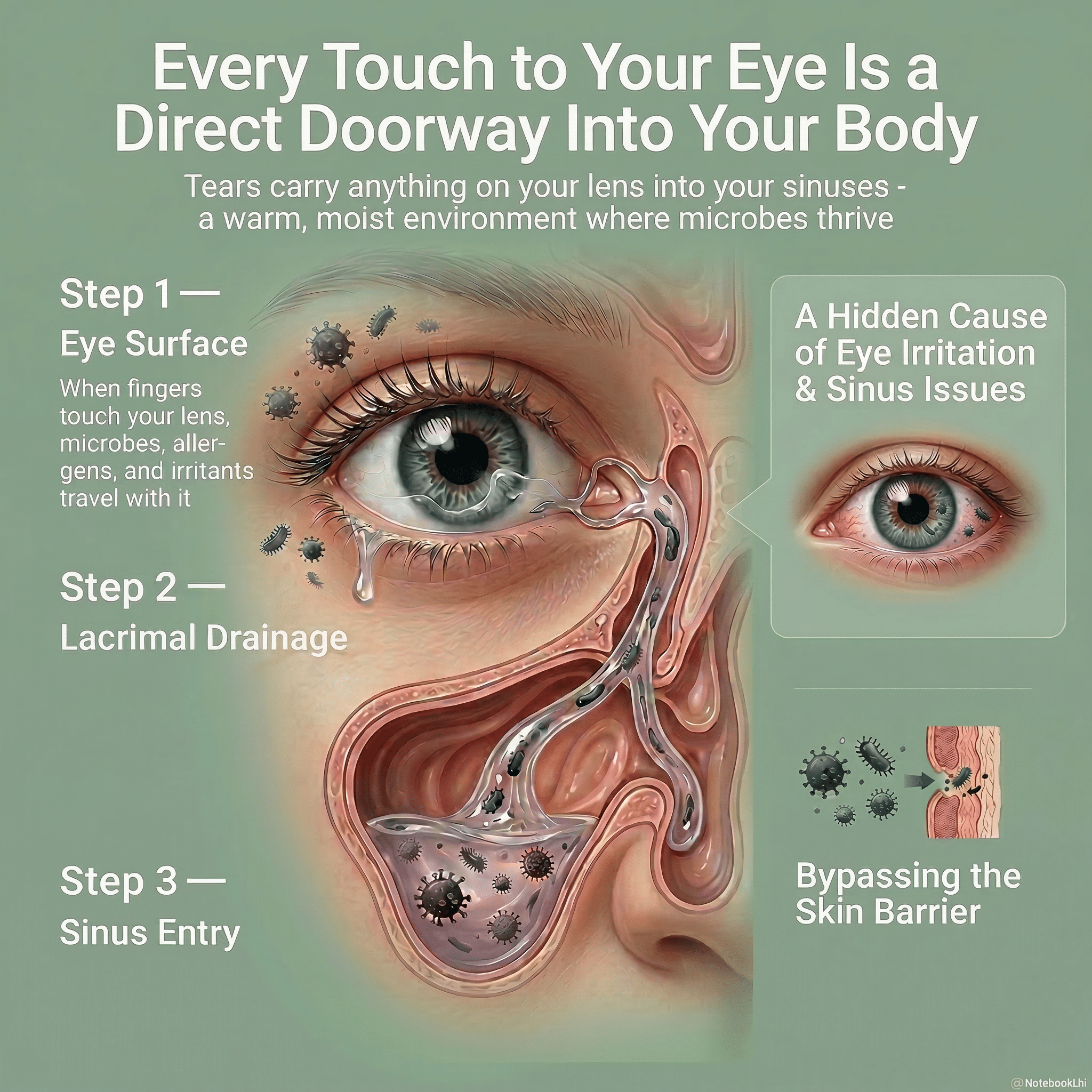 Even after handwashing, bacteria beneath your fingernails remain – and transfer directly onto your contact lens.